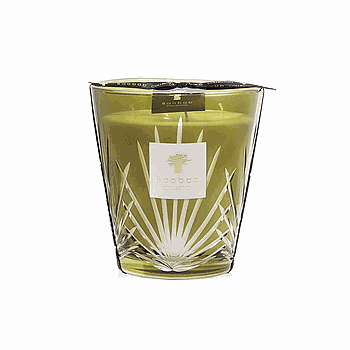 The Palm Springs scented candle is delicately hand engraved with a palm leaf pattern. The deep khaki colored glass recalls the vegetal spirit of this collection.